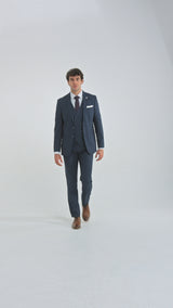 Ανδρικό κοστούμι 3 τεμαχίων με ρίγες σε μπλε-ναυτικό χρώμα